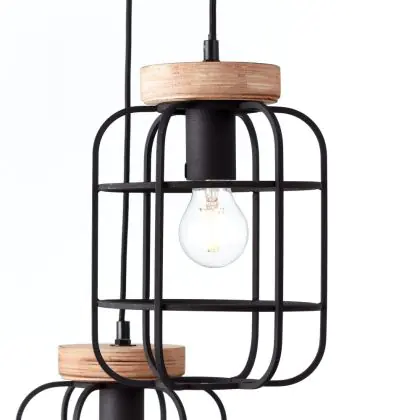 Brilliant Gwen Luce Pendente Metallo Legna Nero | 420mm - Adatto per 3x E27