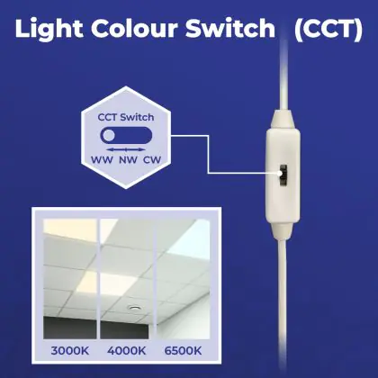 Per quanto riguarda il colore della luce, ci sono diverse opzioni fra cui scegliere, ognuna con una diversa applicazione. Una luce di 3000K (bianco caldo) è particolarmente adatta alle aree generali, mentre la luce di 4000K (bianco freddo) favorisce la concentrazione e l'attenzione e quella di 6500K (bianco luce del giorno) è l'opzione migliore per i luoghi in cui serve avere una buona visibilità dei dettagli. Questo particolare apparecchio ha temperatura di colore di 3000K - 4000K - 6500K CCT.