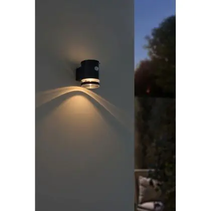 Descrizione D'Lite Luce Da Parete Solis Solar Nero Up & Down - 830 Luce Calda - | IP54 - Sensore Di Movimento