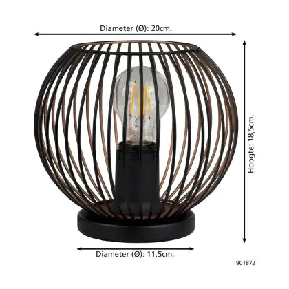 Eglo Lampada Da Tavolo Almanzora Acciaio Nero Rame | IP20 - Adatto per 1x E27
