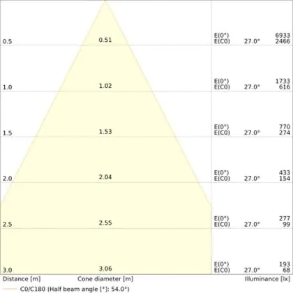 ![]() Il codice colore è una combinazione di resa cromatica (CRI) e colore della luce (Kelvin). La prima cifra indica la resa cromatica (1 = resa del colore molto bassa, 9 = massima resa del colore), mentre la seconda e la terza si riferiscono al colore della luce. Esempio: il codice colore 830 indica una buona resa cromatica (8) e luce bianca calda (3000K). |