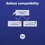 Un ballast (reattore) può essere visto come un regolatore di energia che accende l'apparecchio luminoso. C'è uno starter nell'apparecchio? Allora ci sarà anche un ballast convenzionale (EM). Gli apparecchi con un ballast elettronico (HF) non hanno uno starter. Si può paragonare un driver LED a un reattore elettronico, ma funziona solo con l'illuminazione a LED.