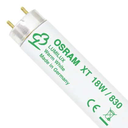 Gli Osram T8 L 18W/830 XT G13 Warm White sono tubi fluorescenti che presentano una base G13 e misurano 59cm. La potenza di questi tubi fluorescenti corrisponde a 18W. Tali tubi rientrano in classe energetica 'A'. L'indice di resa cromatica si assesta nell'intervallo di 80-89Ra. La caratteristica peculiare di queste lampade sta nella loro lunga durata veramente eccezionale di 50.000 ore. I tubi in questione, con una temperatura di colore di 3000K, garantiscono una luce bianca calda, adatta per ambienti in cui si ricerca accoglienza e vivacità allo stesso tempo.
