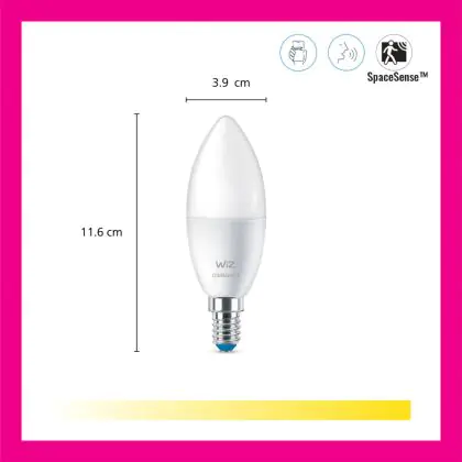 La lampada Pacco doppio 2x WiZ Smart LED E14 Candela Ghiaccio 5W 470lm | Miglior Resa Cromatica - Dimmerabile - Sostitutiva 40W è il sostituto perfetto per le tue vecchie lampade 40W con attacco a vite piccolo E14 grazie alla sua tecnologia LED. Passare a LED ti offrirà molti vantaggi!