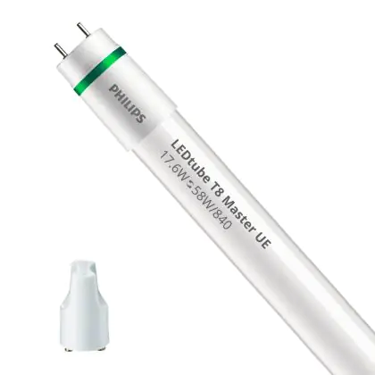 Il Philips Tubo LED T8 MASTER (EM/Mains) Ultra Efficiency 17.6W 3700lm - 840 Bianco Freddo | 150cm - Sostitutiva 58W è l’alternativa perfetta per il tubo fluorescente standard 58W nelle plafoniere con un reattore. Con questo tubo LED hai una garanzia di una vita media utile molto lunga e 5 anni Lampadadiretta.it di totale garanzia. .