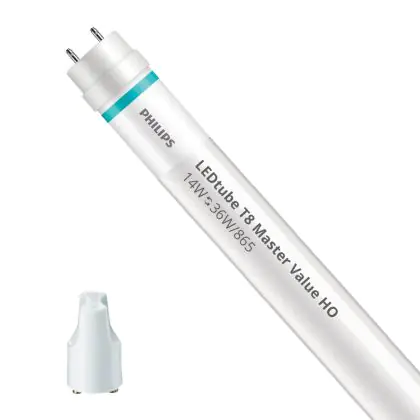 Il Philips Tubo LED T8 MASTER Value (EM/Mains) High Output 14W 2100lm - 865 Luce del Giorno | 120cm - Sostitutiva 36W è l’alternativa perfetta per il tubo fluorescente standard 36W nelle plafoniere con un reattore. Con questo tubo LED hai una garanzia di una vita media utile molto lunga e 5 anni Lampadadiretta.it di totale garanzia. .
